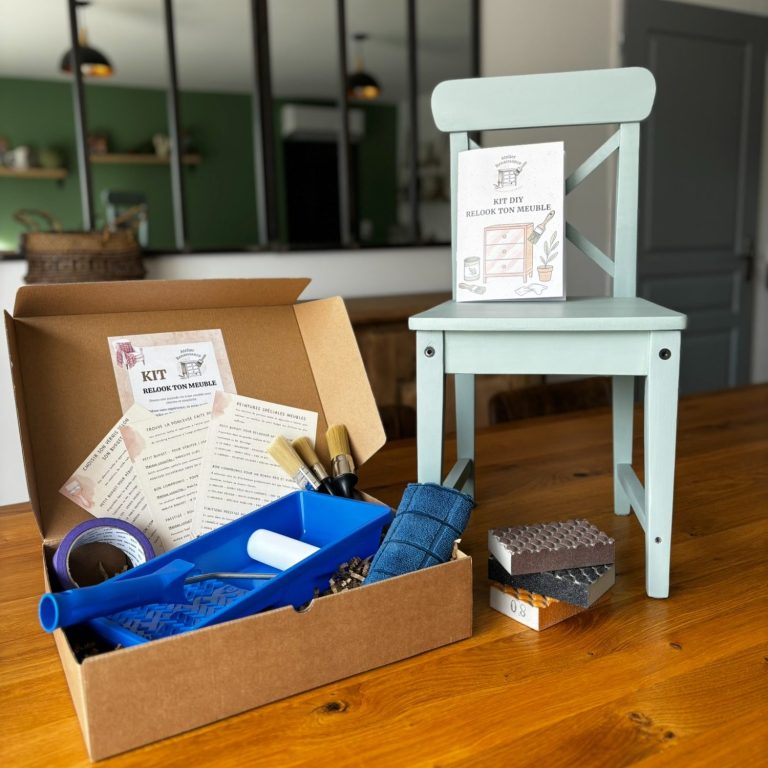 Le kit “Relook ton meuble” rassemble les éléments essentiels pour réaliser votre projet de rénovation à la maison.